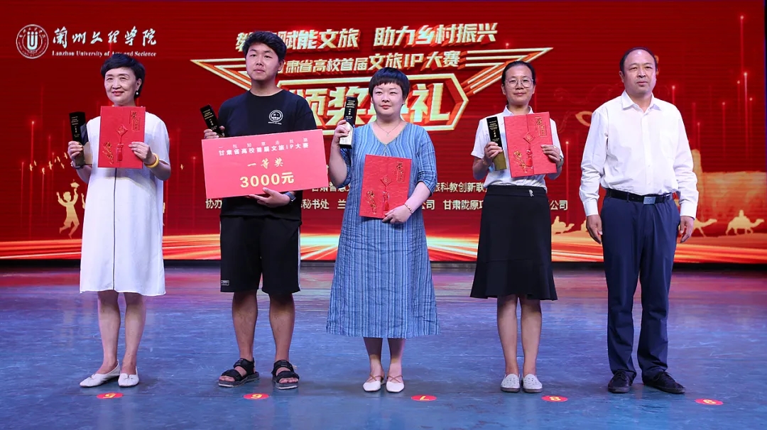 2021年7月16日,甘肅省高校首屆文旅IP大賽頒獎(jiǎng)儀式在蘭州文理學(xué)院順利舉辦。省教育廳黨組成員、副廳長(zhǎng)張國(guó)珍,省文化和旅游廳二級(jí)巡視員王開江,甘肅文旅集團(tuán)總經(jīng)理?xiàng)钣詈?,蘭州文理學(xué)院黨委副書記、校長(zhǎng)鄭偉強(qiáng),蘭州文理學(xué)院黨委委員、副校長(zhǎng)張焱,甘肅省教育廳高教處處長(zhǎng)張發(fā)旺等領(lǐng)導(dǎo)出席,省教育廳、省文化和旅游廳、甘肅文旅集團(tuán)相關(guān)負(fù)責(zé)同志,各高校有關(guān)負(fù)責(zé)同志、教師代表和學(xué)生代表,獲獎(jiǎng)作品團(tuán)隊(duì)代表共450余人參加此次頒獎(jiǎng)儀式。